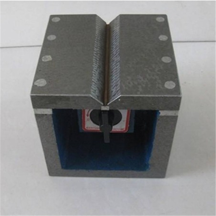 磁性方箱的優(yōu)點:V型槽帶有磁力,使用方便。在上表面、兩側(cè)和V型面有磁力,V型面解決了不規(guī)則工件的測量。